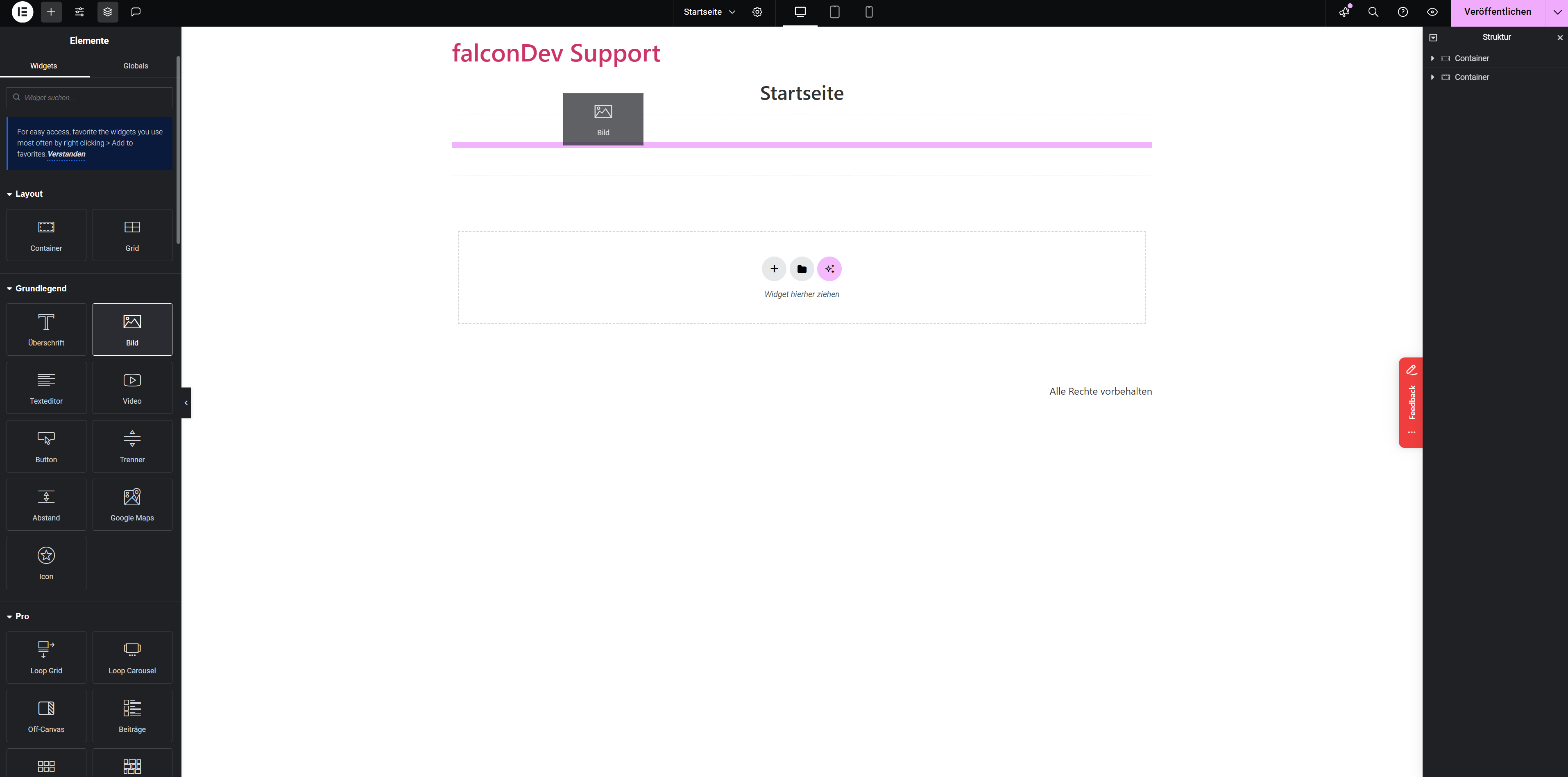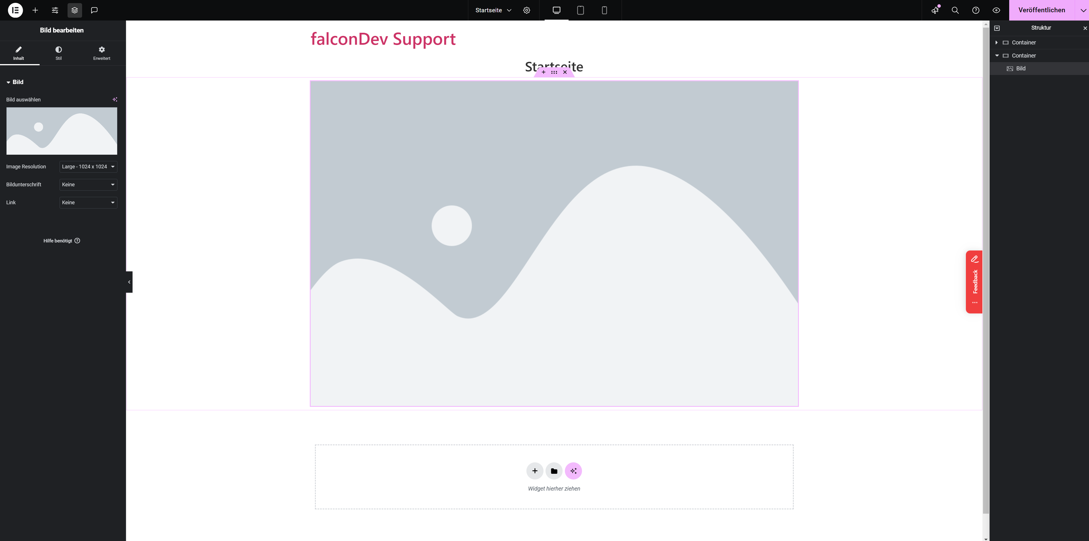 - Suchen Sie das Bild-Widget und ziehen Sie es an die gewünschte Position auf der Seite, entweder in einen neuen Abschnitt oder in eine vorhandene Spalte.