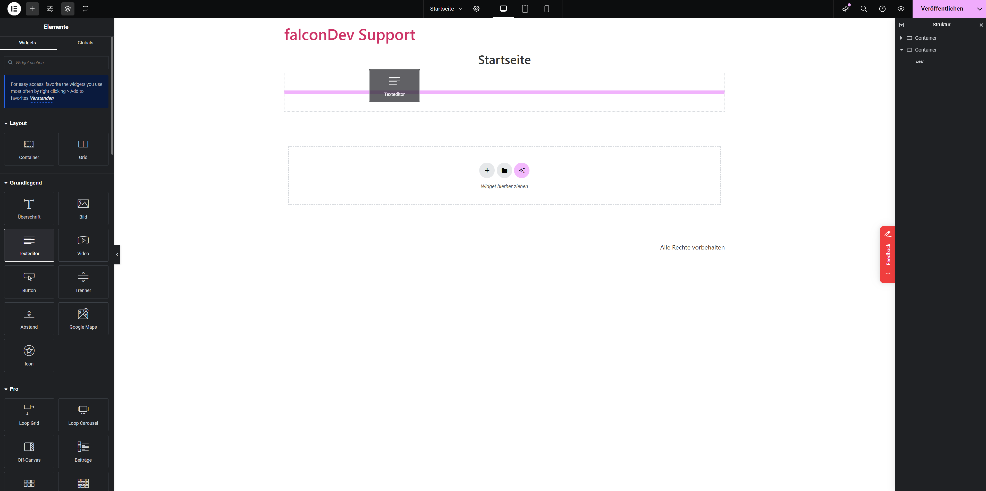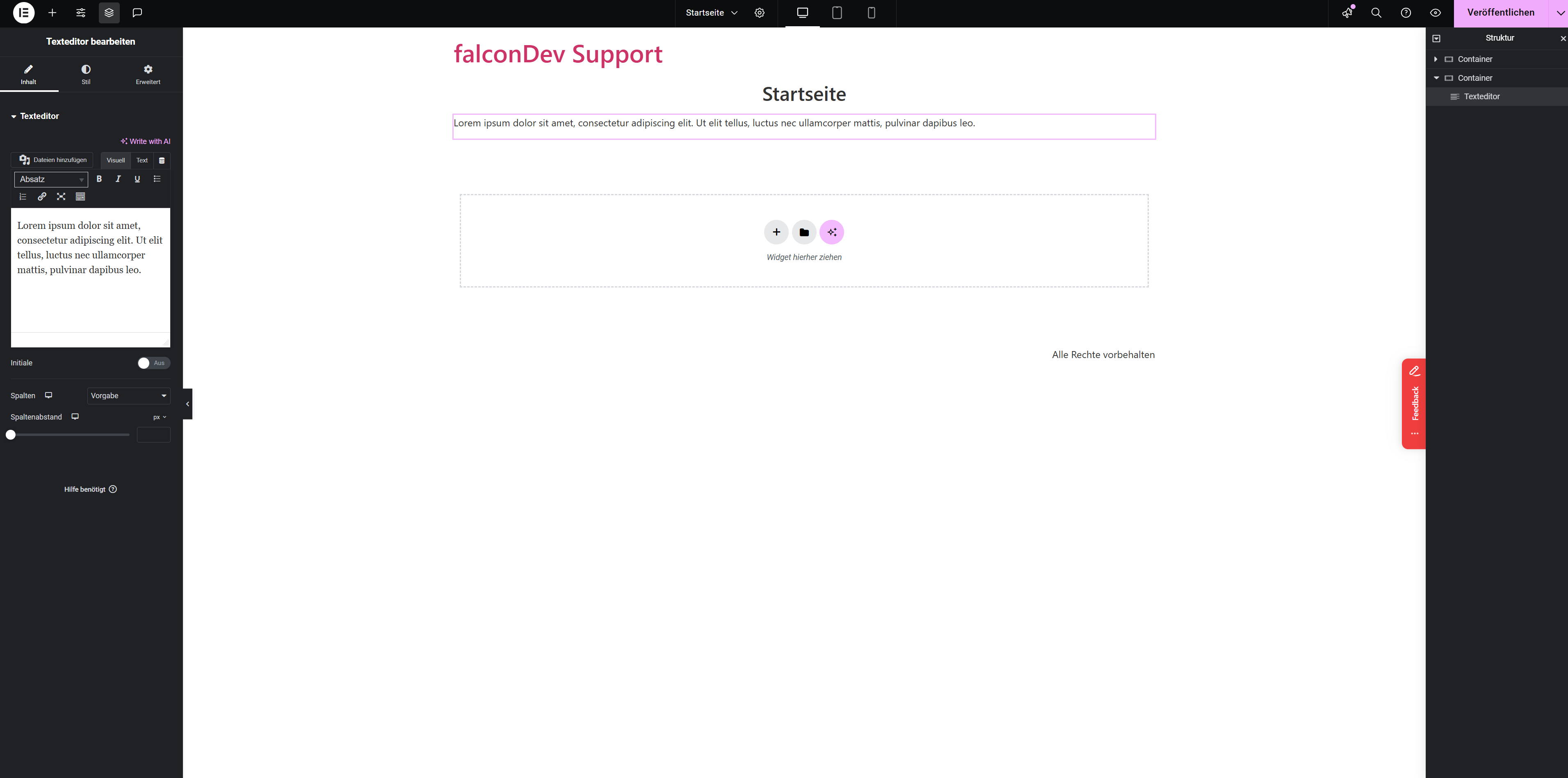 - Sobald das Text-Widget platziert ist, erscheint der Text-Inhalt auf der Seite. Klicken Sie in den Textbereich, um ihn zu bearbeiten.