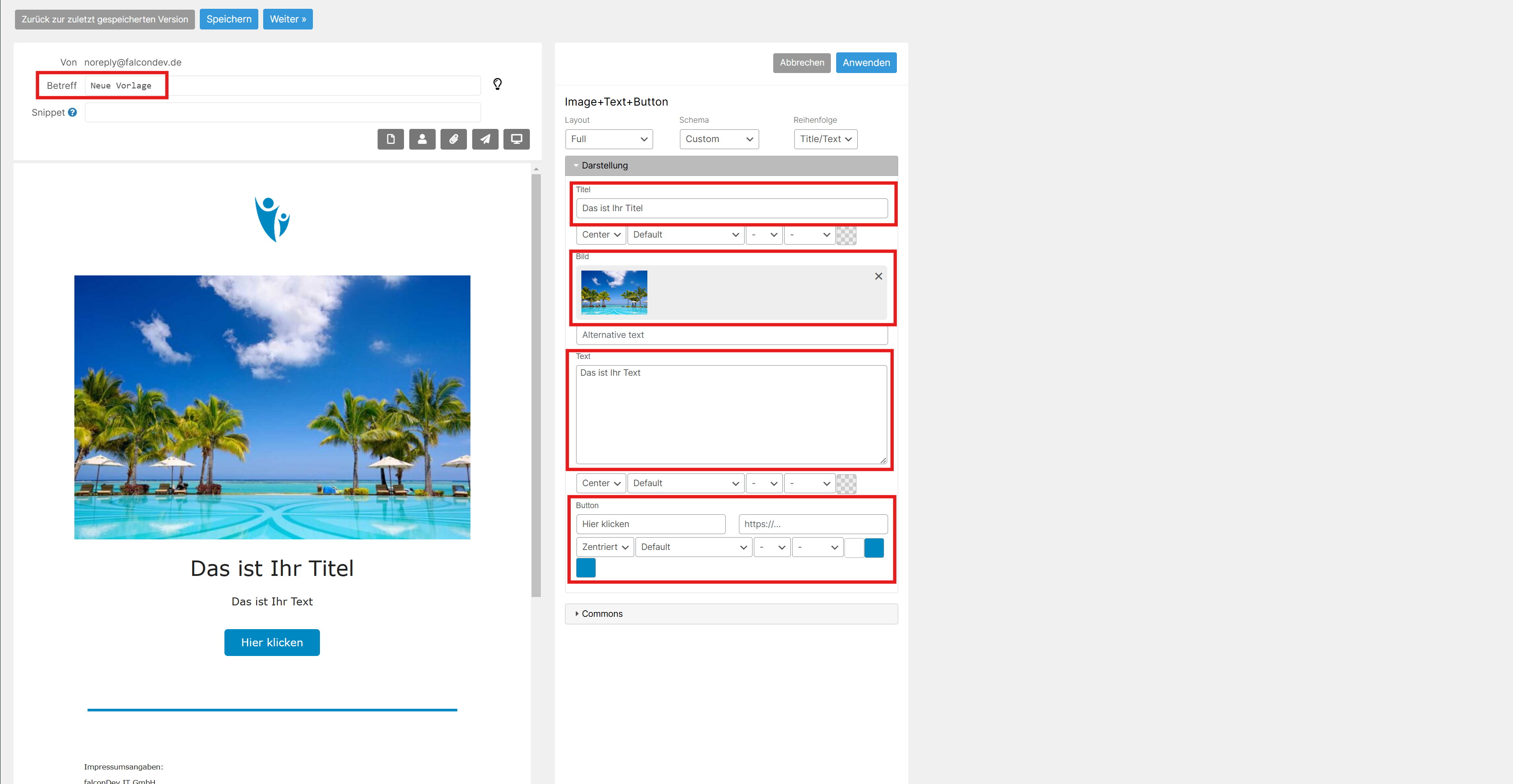 - Bild: Fügen Sie ein neues Bild hinzu oder ersetzen Sie das vorhandene durch ein passendes aus Ihrer Mediathek.